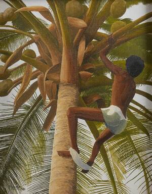 Avslutade auktioner liknande Oljemålning, Oidentifierad konstnär. Signerad. Klättrande man. Olja på duk
