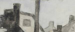 Oidentifierad konstnär. Monogramsignerad, hustak, -80, bladets mått: 17x40 cm.