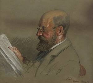 Akvarell, Oidentifierad konstnär. Läsande man. Signerad och daterad -76
