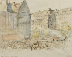 P I Björk, Signerad, Hötorget den 13 maj 1938, 28x35 cm.