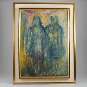 Monica Lorentzon (f. 1940), Sverige. Figurer. Signerad. Olja på pannå, 69x51 cm, yttermått inklusive ram: 84x67 cm. Monica Lorentzon, svensk målare född 1940. Läs mer...