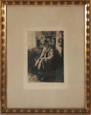 Etsning, "Skospikaren". Signerad. Inramad. (27x19)