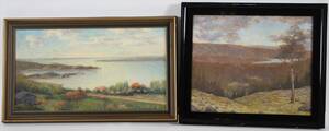 Oljemålningar 2st, naturmotiv. Signerad G.A. Calleberg. (största mått 37x68)