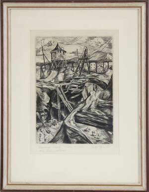 Etsning, "Stora rasen Falu Gruva". Signerad och daterad 1923. Inramad. (15x18) Läs mer...