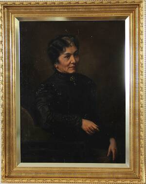Olja på duk, kvinnoporträtt. Signerad Rimanocz?. I senare ram. Smärre färgbortfall. (79x59)