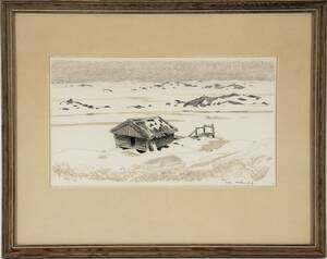 Roland Svensson, "Svenska högarna" Signerad Roland Svensson med dedikation 1939. Kolteckning 24 x 44 cm. Ej examinerad ur ram, gulnad. Läs mer...