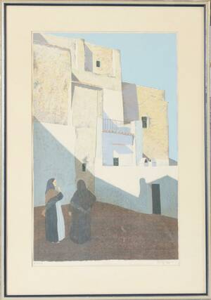 Färglitografi, sydländskt motiv. Signerad och numrerad. Inramad. (50x32)