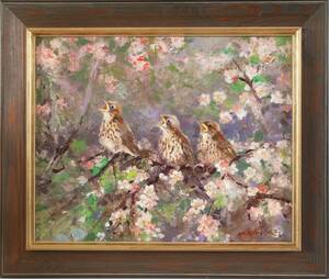 Olja på duk, fåglar i träd. Signerad. (40x50)