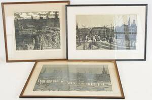 SVEN-OLOF EHRÉN (1927-2004): 3 st, Vyer över slussen och gamla stan, signerade och daterade Sven Olof Ehren -94, numrerade 164/250, 114/250, HC XVI/XXX, färglitografier, ca Läs mer...