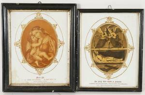 Med förgylld dekor. Inramade. Fläckar. (största rammått 29x24)