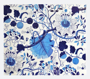 Oljemålning, 2000-talet. 'Blue Leafs'. Olja på duk, osignerad. Dukmått: ca 130x190 cm. Ej uppspänd, utlämnas rullad, rullat mått: L. ca 130 cm. Diam: ca 10 cm. JH Transport erbjuder transport av denna vara till en kostnad av DKK 375 till JH's lager i Odense eller Ishöj, Danmark.