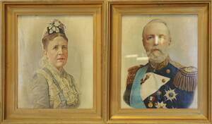 Porträtt av Oscar II och Sofia av Nassau. I bronserade ramar. (Rammått 60x50)
