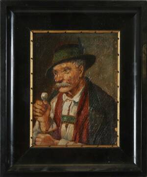 Olja på duk, mansporträtt. Otydligt signerad. Mindre färgsläpp. (17x13)