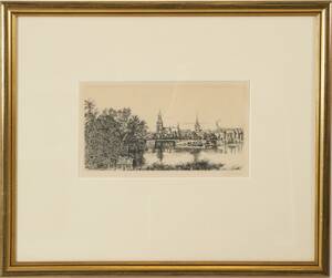 Etsning, stadsbild från Falun. Signerad. Inramad. (13x24)