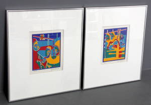 Johnny Wilslew. Par litografier i passe partoute. Begge sign. i bly samt nr. 19/25. Mål hver: 22,5 x 18,5 cm, (47x41).