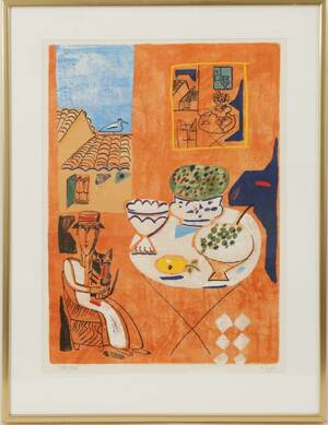 "Brasserie Salya" Madeleine Pyk Född 1934 Signerad: M Pyk Numrerad: 69/275 Mått bildyta: 41 x 41 cm Mått med ram: 60,5 x 58,5 cm Konditionsrapport: Läs mer...