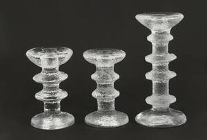 Timo Sarpaneva 1926-2006 Tre ljusstakar i olika storlekar tillverkade av klarglas med åtta, sju och sex ringar Formgivna av Timo Sarpaneva för Iittala i olika Läs mer...