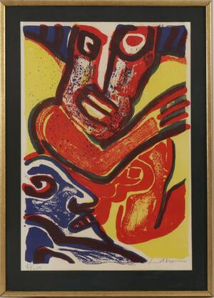 Bengt Lindström, "Laura/Auran". Signerad Lindström. Utförd 1994. Duk 92 x 73 cm. Ett äkthetsintyg från Comité Bengt Lindström medföljer. Ytsmuts. Färgbortfall. Några ytliga fläckar. Några Läs mer...
