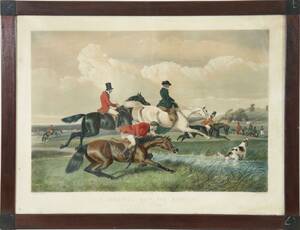 Jaktscen. Inramat. Blad med veck, mindre fläckar. (Rammått 82x109)