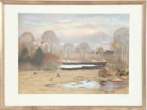 Offsettryck, landskap med djur. Signerad och numrerad. Inramad. (51,5x37)