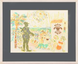 Färglitografi, figurkomposition. Signerad. Inramad. (45x60)