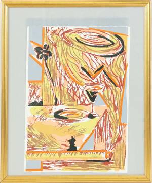 Färglitografi, komposition. Signerad och numrerad. Inramad. Bladet något förskjutet i ram. (43x29)