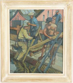 Olja på pannå, dykarscen. Signerad och daterad 47. (54x44)
