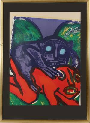 Färglitografi, figurkomposition. Signerad och numrerad. Inramad. Bladet förskjutet i ram. (72x54)