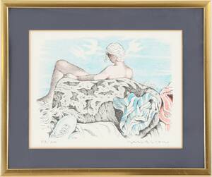 Färglitografi, figurscen. Signerad och numrerad. Inramad. (20x26)