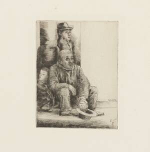 Etsning, "Tiggaren". I plåten monogramsignerad. Inramad. (10x7,5)