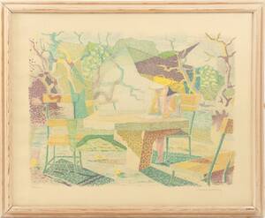Färglitografi, komposition. Signerad och numrerad. Inramad. (40x51)