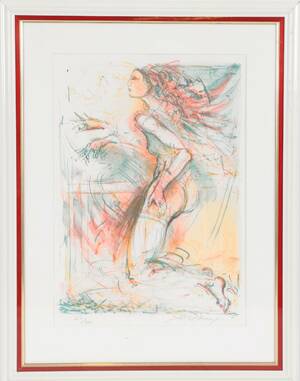 Färglitografi, figurkomposition. Signerat och numrerat. (51x36)