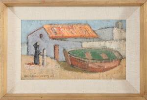 Sydländskt stadsmotiv med båt. Signerad: Brita Nordencreutz Daterad: 1924 Mått bildyta: 16,5 x 24 cm Konditionsrapport: Bruksslitage på ram, inga övriga anmärkningar. ----------------- Brita Nordencreutz Läs mer...