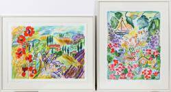 Litografier, två st. Landskap. Bladens mått ca 53x41 cm. Ej examinerade ur ram.