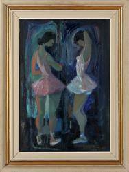 Olja på pannå, sign o dat 1952. Ballerinor. 63x43 cm.