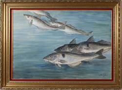 Blandteknik. Torskfiskar. Signerad och daterad 1931. Dagmått 67x97 cm. Ej examinerad ur ram.