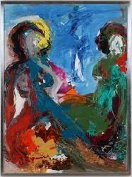 Oljemålning på duk. Figurkomposition. 108x81 cm.