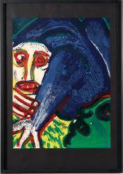 Färglitografi, 31/200. Signerad. Surrealistisk figurkomposition. Dagmått ca 71x54 cm. Ej examinerad ur ram.