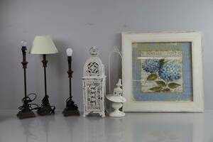 Ljuslyktor 2 st, dekorationer 3 st och tavla
