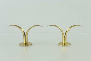 Ivar Ålenius-Björk, ljusstakar ett par, mässing, "Liljan", Ystad metall, 1900-talets mitt Höjd ca 12 cm. Bredd ca 22 cm. Slitage. Läs mer...