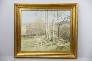 Björkar i vårlandskap. Signerad R.Högfeldt. Bildstorlek: 44 x 53 cm. Följerätt.