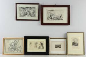 TAVLOR, 6 st, bl.a. kopparstick, tuschteckning