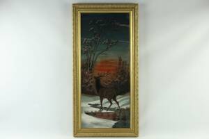 Hjort i vinterlandskap. Bildstorlek 88 x 37 cm.