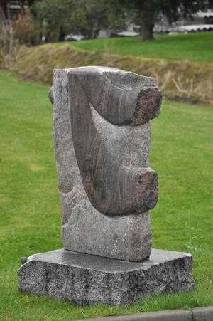 Claus Nydal: Skulptur af svensk Halmstad granit. H. 110 cm. Vægt ca. 250 kg.