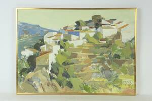 Sydeuropeisk stad på kulle. Signerad. Bildstorlek 57 x 79,5 cm. Följerätt.