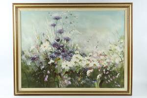 Blomsteräng. Otydligt signerad. Bildstorlek: 75 x 100 cm.