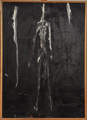 Jeff Ibbo (f. 1941), CD. Komposition med figur. Olie på lærred. Sign. IBBO. 200 x 150 cm. U.R. Medfølgende bog, Jeff Ibbo Malerens Model samt Läs mer...