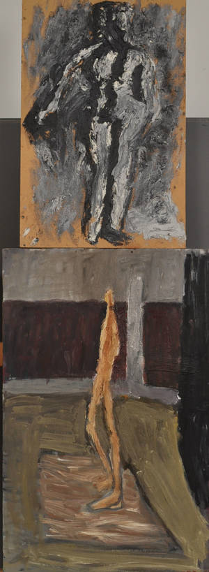 JEFF IBBO. 2 malerier, Olie på plade. Modelstudio, sign. Ibbo, 80 x 50 cm. U.R. og usign. 61x40 cm. (2) Se kunstnerprofil her