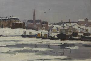 Gunnar Zetterström (1902-1965), Sverige. Vy mot Skeppsholmen. Signerad. Olja på pannå, 30x38, yttermått inklusive ram: 40x50 cm. Gunnar Zetterström, född 1902 i Stockholm, död 1965, Läs mer...