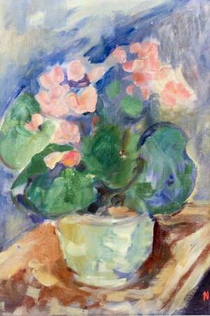 Monogramsign NL, blomsterstilleben, 40 x 32.